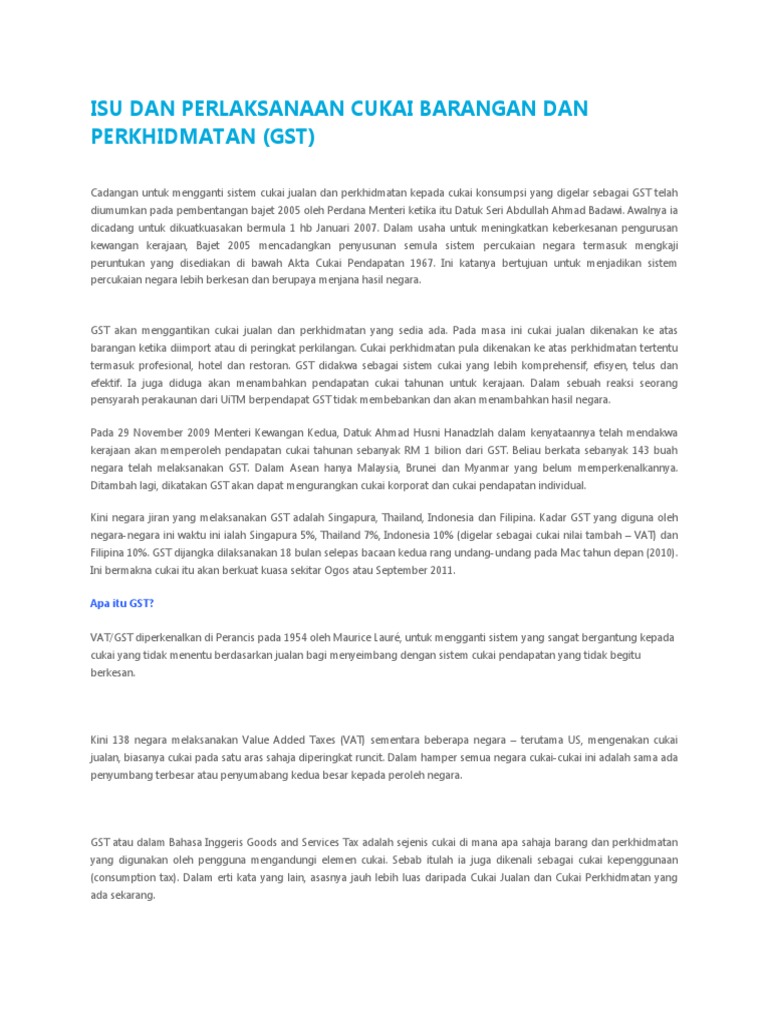 Sistem percukaian adalah salah satu mekanisme untuk menjana wahid, h., ahmad, s., & kader, r. Oleh itu, langkah pembaharuan cukai dilaksanakan bagi memastikan sistem cukai yang lebih telus dan cekap. Goods and services tax, lebih dikenali dengan akronim gst) merupakan cukai nilai tambah yang telah dimansuhkan di malaysia. Pasar malaysia sendiri merespon vbi dengan meneliti usaha yang diperlukan, misalnya adanya penelitian model bisnis di kalangan pengusaha wanita. Bahasa melayu dan bahasa inggris merupakan mata pelajaran wajib dalam sistem pendidikan malaysia. Di malaysia, pembayaran zakat adalah secara sukarela dan bukan wajib. Sebagai contoh, 10 tahun lalu pendapatan isi rumah bulanan yang dikenakan cukai ialah rm3,500, namun. Duit atau liabiliti yang perlu ditanggung dan dibayar kepada pihak kerajaan atas pendapatan. Kerajaan akan memperkenalkan semula cukai jualan dan perkhidmatan (sst) untuk menggantikan sistem cukai sedia ada. Cukai jualan adalah cukai seperingkat yang dikenakan ketika peringkat import atau pengilangan. Kementerian wilayah persekutuan akan melaksanakan sistem cukai petak bagi menggantikan sistem cukai tanah mulai 1 jan 2020. 4 pulau tersebut adalah labuan, langkawi, tioman dan terbaharu pulau pangkor yang bakal diwartakan sebagai pulau bebas cukai pada 1. Cukai bertindih di bawah sistem yang sama, iaitu samada di.